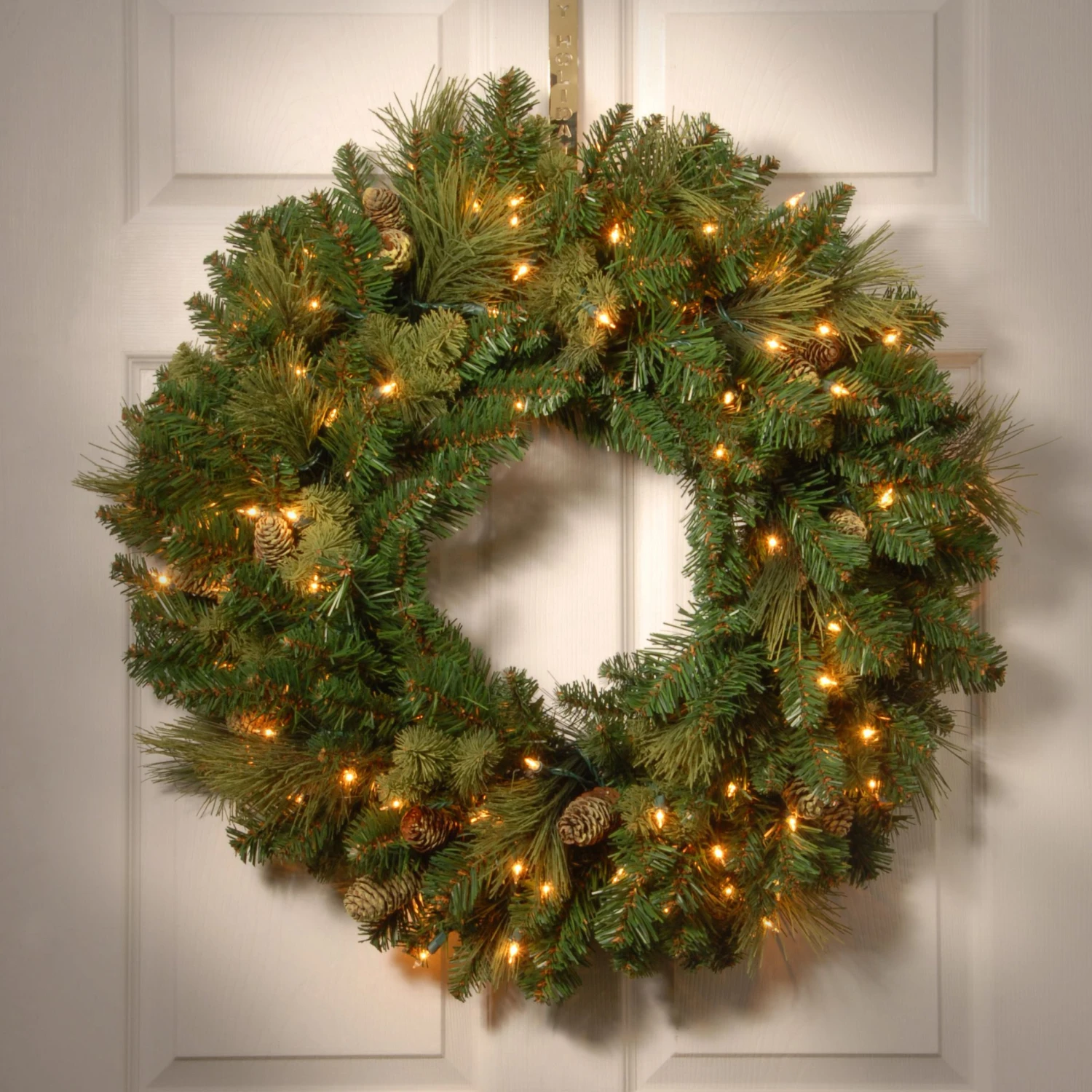 - This wreath features over one hundred individually crafted branch tips, creating a lush and full bodied hanging decoration that is sure to impress family and friends alike.