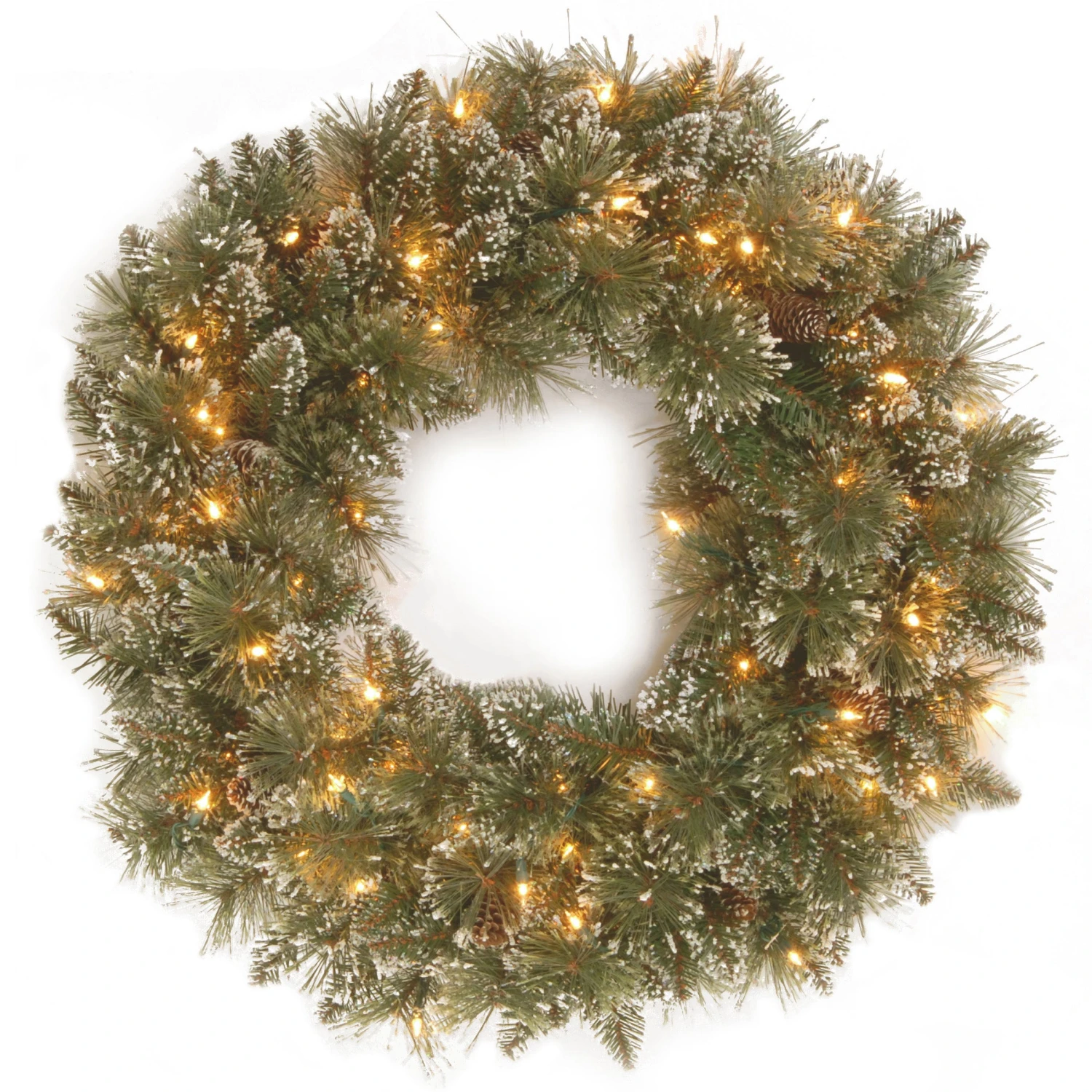 National Tree Company, Pre-Lit Artificial Christmas Wreath, Glittery Bristle Pine With Twinkly LED Lights, Plug In, 30 In