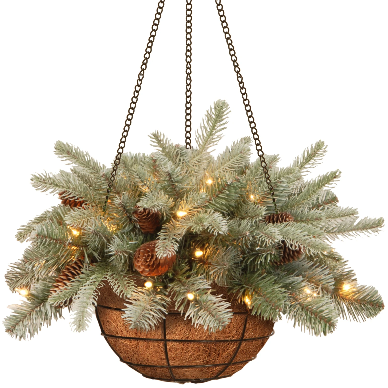 - This Arctic Spruce Pre-Lit ‘Feel Real’ Artificial Christmas Hanging Basket is 20 inches wide and designed to look and feel lifelike, featuring 114 individually crafted branch tips to create full bodied branches.