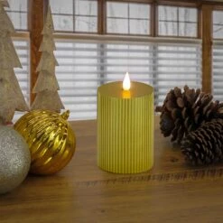 National Tree Company 4×8 HGTV Home Collection Flameless Georgetown Pillar Candle, Gold