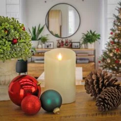 National Tree Company 4×8 HGTV Home Collection Flameless Georgetown Pillar Candle, Ivory
