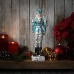 National Tree Company Silver And Blue Christmas Nutcracker, Antique Finish, 17 In